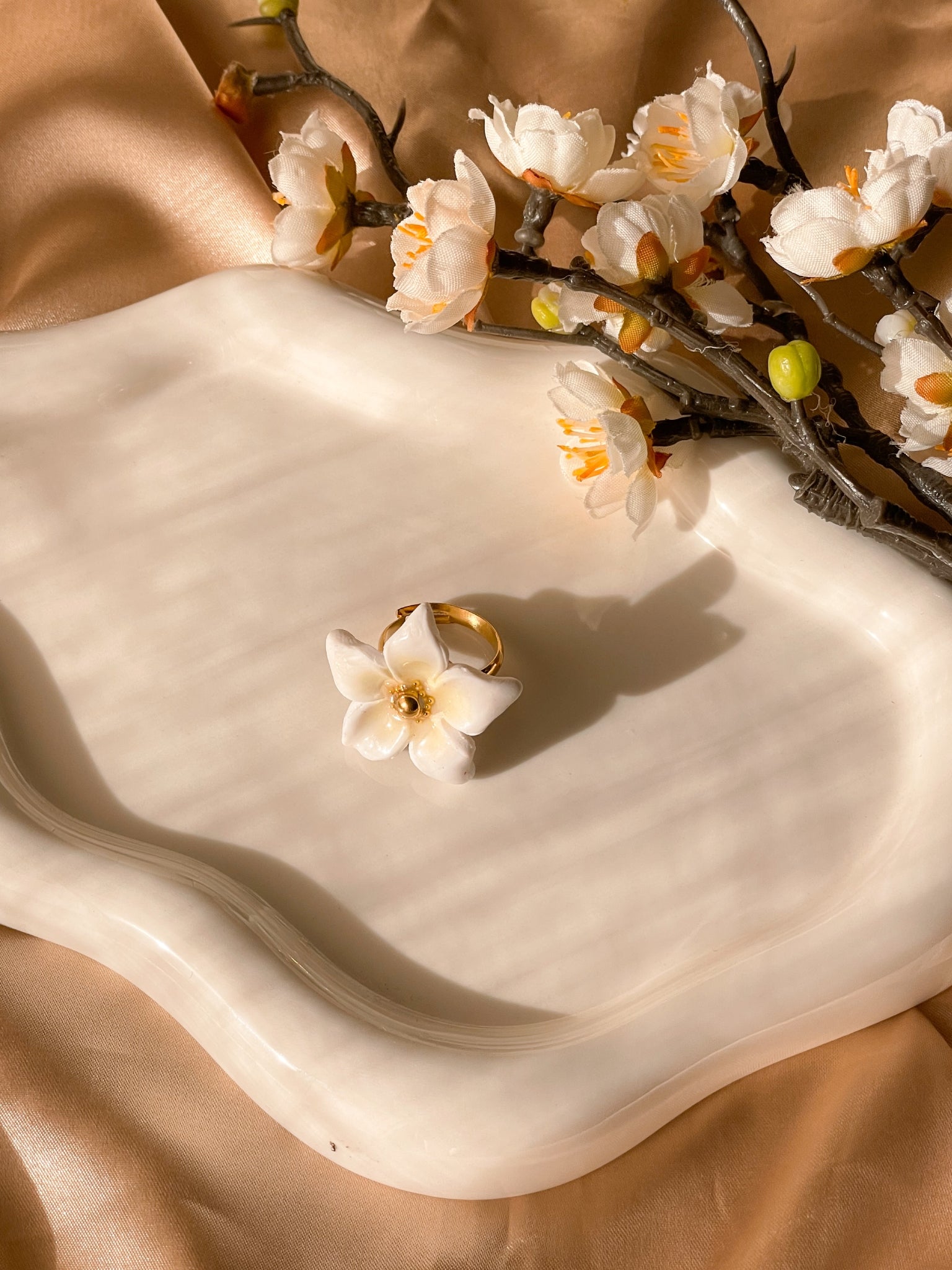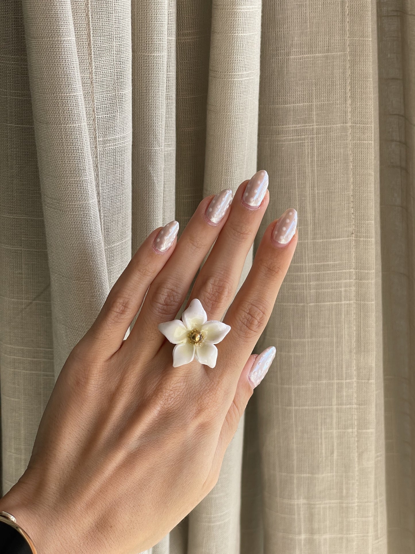 #🆕 LILY'S GRACE | Χειροποίητο ρυθμιζόμενο δαχτυλίδι από πολυμερικό πηλό | White